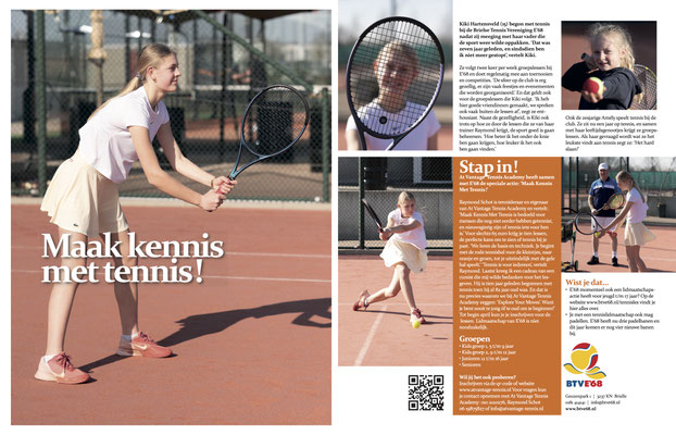E'68 toppers Kiki en Amély werden geïnterviewd voor een artikel in het magazine Briellenaer over de trainingen van At Vantage bij E'68.